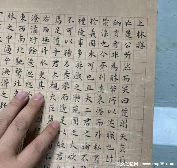 3、如今不少人都用抄写《上林赋》来代表自己的爱意,以此来表示自己对爱人的感情是从一而终的,并且字字都非常用心,收到《上林赋》的人也能够从每个字中都感受到对方的用心,因此不少情侣都因为《上林赋》而增进了感情,所以爱ta就给ta抄一遍《上林赋》吧。久久经验网 WWW.EXp99.cOm